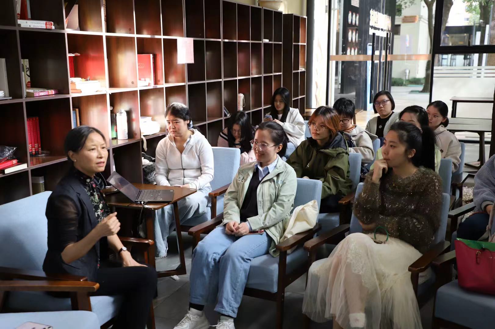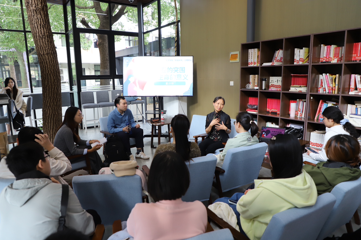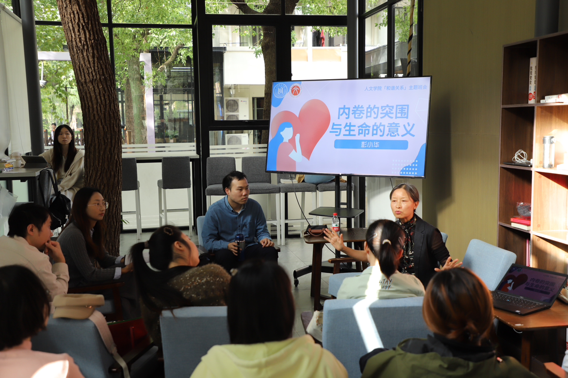 2025102214:00我与导师面对面”系列活动在徐汇校区东部园区阳光书吧举行四川大学文艺学博士、心理咨询师、翻译家及自由撰稿人彭小华作题为内卷的突围与生命的意义的主题分享,活动由学院兼职辅导员吴若晗主持,研究生心理委员及报名学生积极参与并提问互动。