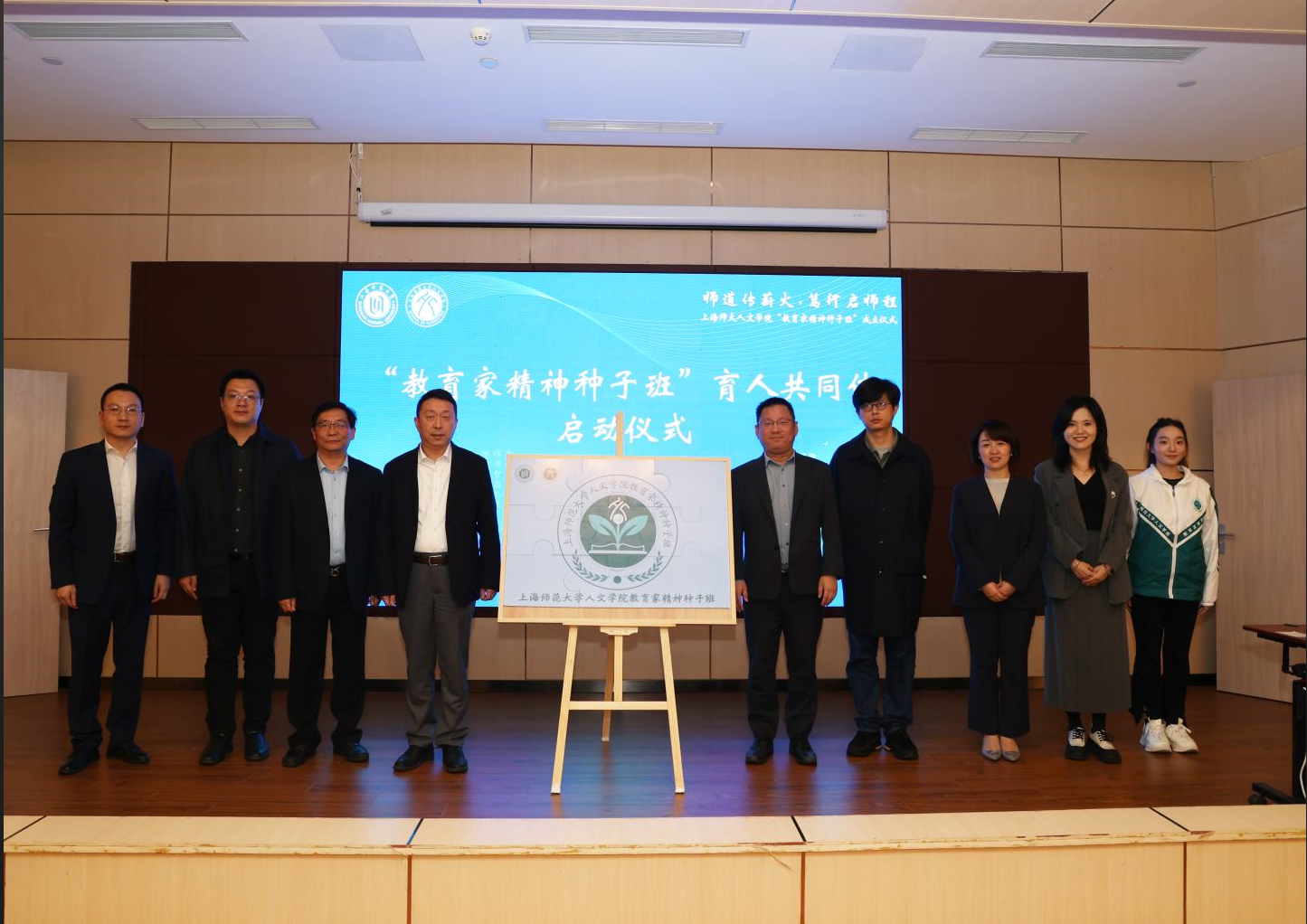 活动的高潮,与会校领导、校宣传部、学工部、教务处、基教处等部门代表、签约学校代表、导师代表及学生代表手持一块绘有“教育家精神种子班”班徽的拼图,这些承载着期望与责任的拼图被郑重而精准地拼接在一起,最终构成了一幅完整的班徽图案。这一刻,不仅是一个仪式环节的完成,更象征着由高校、中学、导师与学生共同构建的“育人共同体”实现了紧密无间的联结,也昭示着所有力量将拧成一股绳,共同滋养每一颗教育的种子,直至其破土而出,蔚然成林。