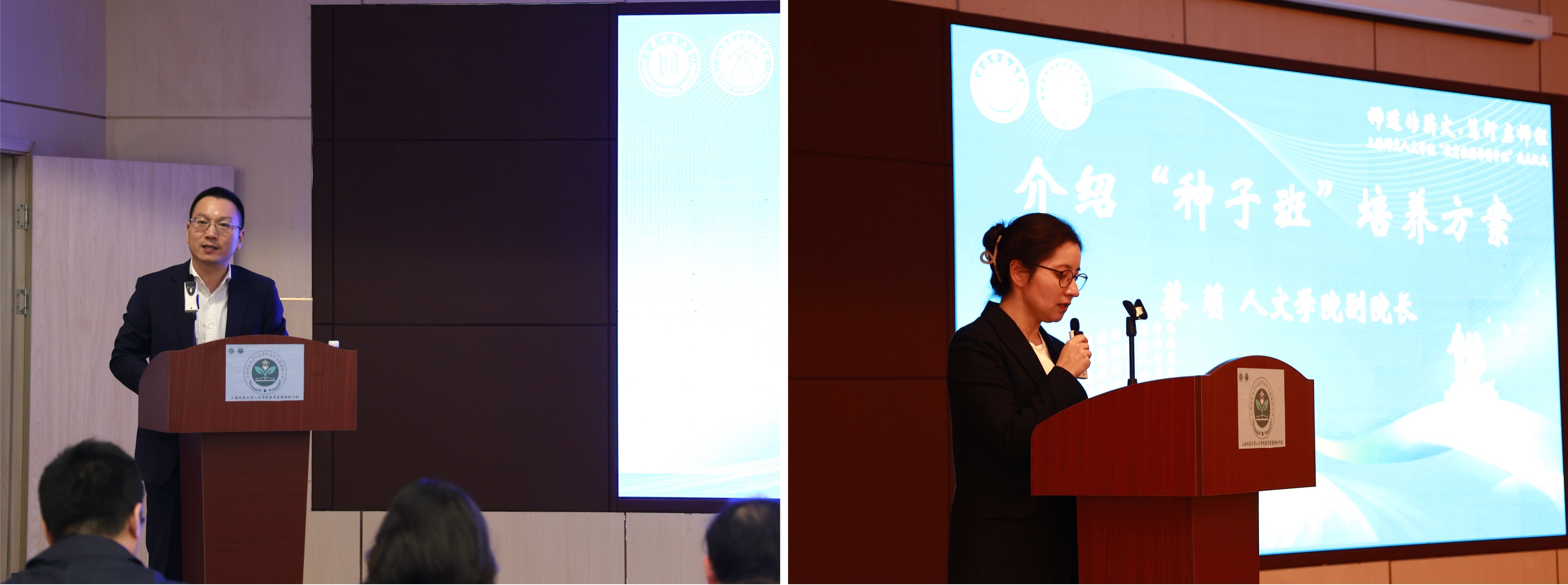 同时,种子班创新实施思政、学业、科研、技能、实践“五维导师”制度,以多元主体共建“育人共同体”,为种子班的成长提供丰厚土壤。科研导师代表、中文系主任王宏超与实践导师代表、MK官方网页版附属奉贤实验中学校长包蓓姹先后发言。王宏超表示将引导学生“追求真理,恪守学术规范”,包蓓姹则承诺“将一线最鲜活的经验与案例毫无保留地带给师范生”,他们从不同角度,表达了倾心指导、保驾护航的决心,展现了“良师领路”的深厚情谊与责任担当。