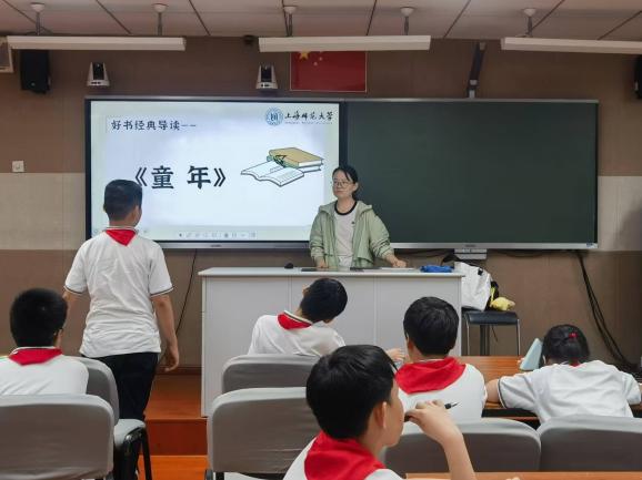 在上海市南洋模范初级中学、上海市园南中学的课堂上,大学生讲师为六年级学生精讲《童年》,梳理情节脉络、剖析人物特质与写作特色。在MK官方网页版附属奉贤实验学校,讲师为六年级学子开设《童年》《林海雪原》等四门课程,通过拆解重点情节与分析重要人物形象来解读经典。上海市第二中学与上海市风华初级中学均按年级分层设计导读课程,精准匹配学生成长需求,六年级围绕《童年》《林海雪原》等经典展开教学,七年级则聚焦《西游记》等经典进行深度导读。
