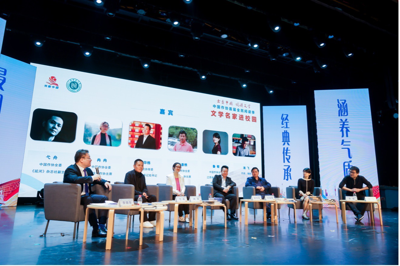 在“与书本为友,与大师对话”的互动流环节,邱华栋、许春樵、冉冉、鲁敏、弋舟和海飞六位作家畅所欲言,与师大学生现场分享了自己独到的文学创作体验。现场大学生无比珍惜与作家面对面交流的机会,围绕“文学阅读与城市文化”的主题踊跃提问,作家们也对师范生如何在未来引领中小学学生阅读经典著作、城市史对于城市写作的融入、文学经典在新时代的价值意义等问题作了积极响应,现场气氛热烈,金句频出,互动频频。同学们纷纷表示,通过与文学名家近距离接触,自身受教良多、受益匪浅,更加坚定了文化自信。