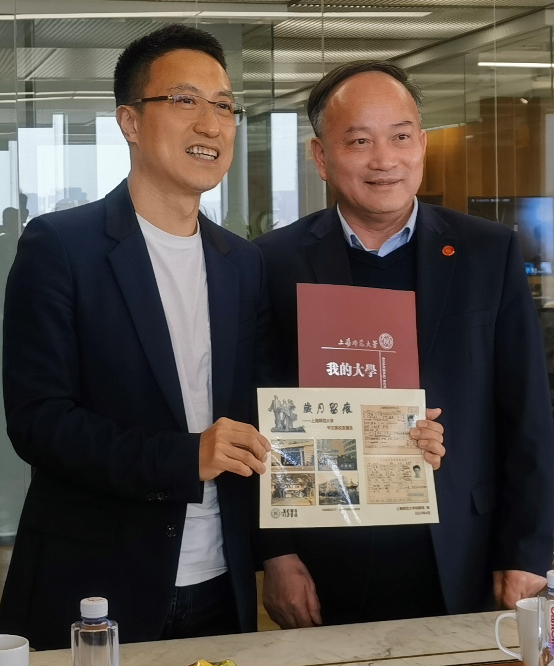 蒋校长等一行5人在苏晓的陪同下参观了柠檬影视传媒的公司所在地,听取了苏晓校友个人成长发展经历和柠檬影视创业以来业绩的介绍。上师大为有苏晓这样杰出的校友感到骄傲,苏晓也为能够在上师大求学并由此出发不断成长而感恩母校。蒋校长代表学校向苏晓赠送了由上师大档案馆保存的苏晓在校求学期间学籍卡影印件,以及由上师大教师制作的特色纪念品,MK(中国)党委书记潘黎勇代表学院向苏晓赠送了由学院教师编辑的中华文史经典精读丛书。